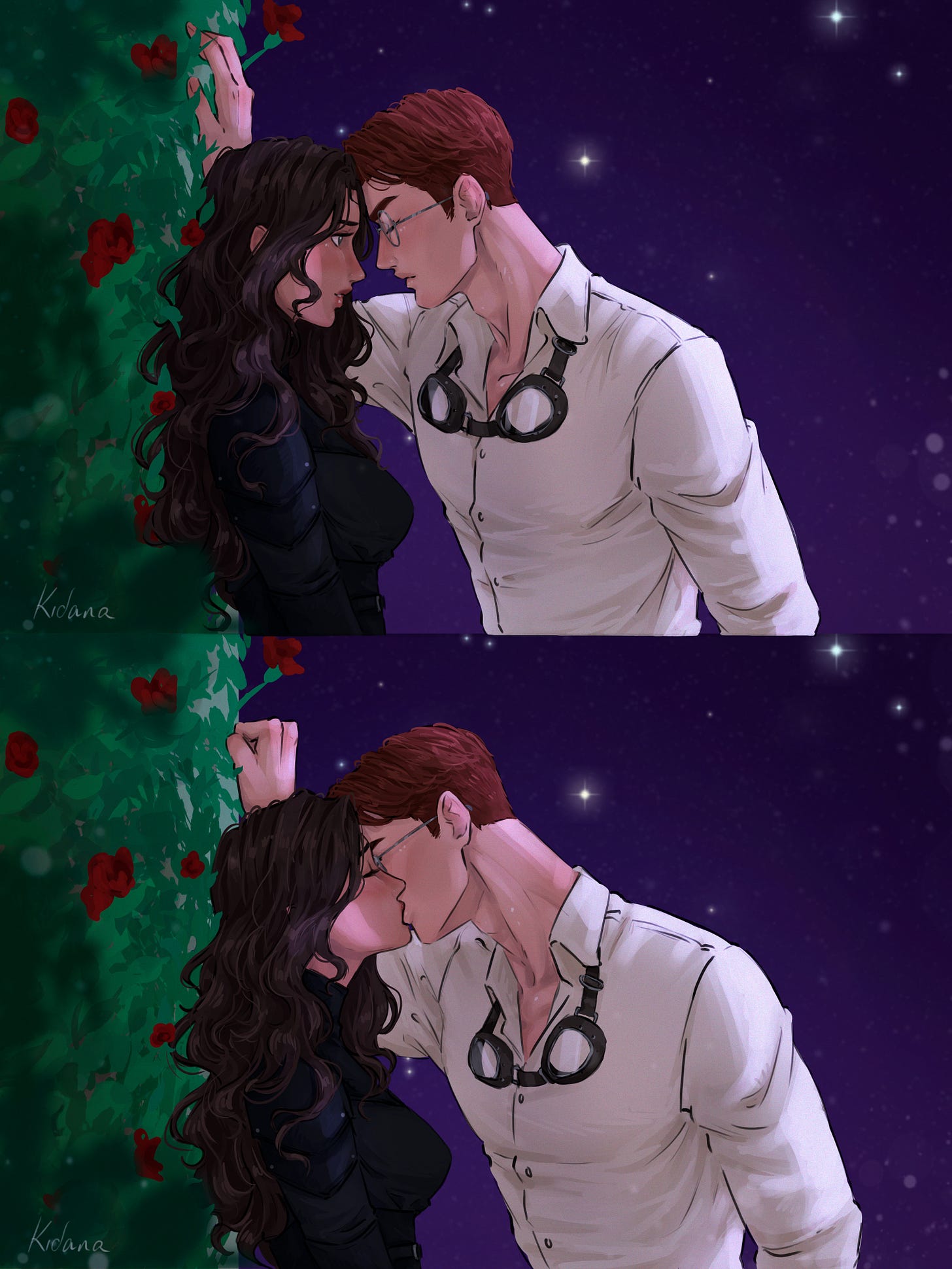 If you follow on Instagram, you’ve already seen this perfect art of Stone & Aesira by kidana_arts, but I’m sharing again because I love it so much. The tension, the colors, Stone’s glasses. Pure perfection.